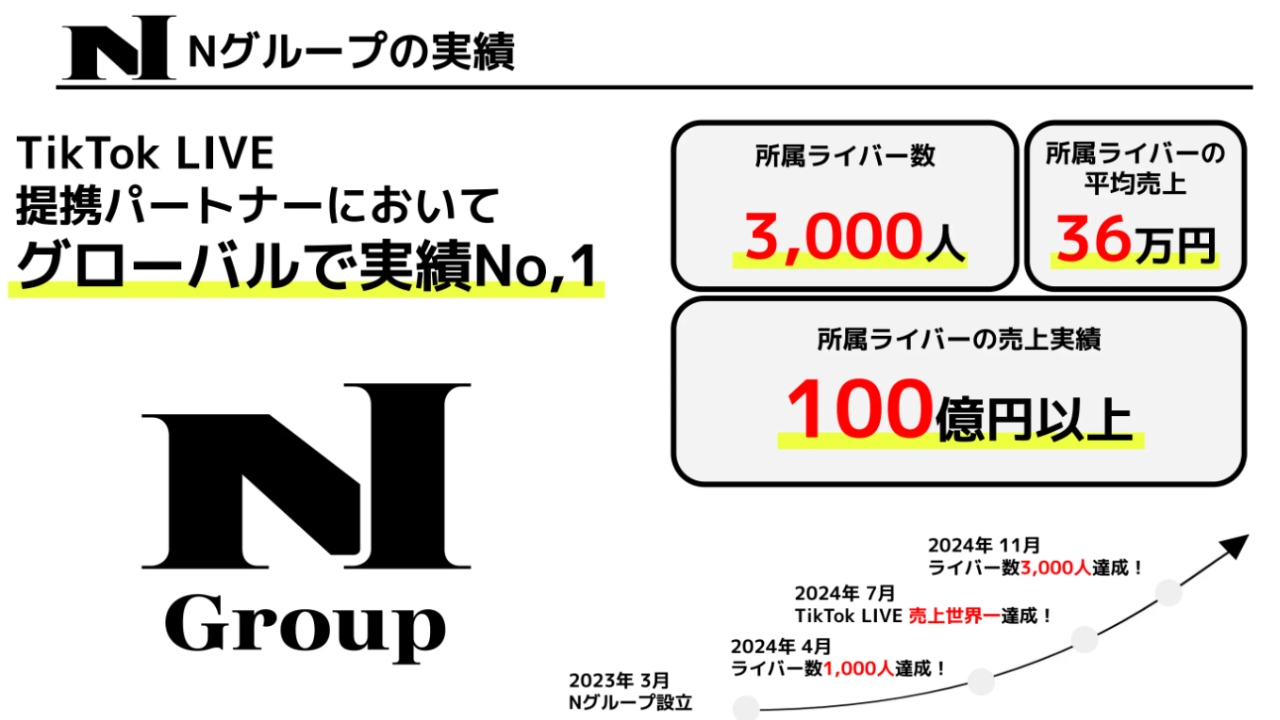 TikTokライブを始めるとき、さらに安心して稼ぎを加速させたいなら、ライバー事務所「Nグループ」への所属がおすすめです。